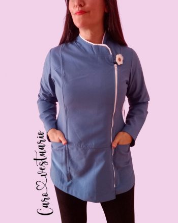 Delantal Gabriela Azul Petroleo con Blanco