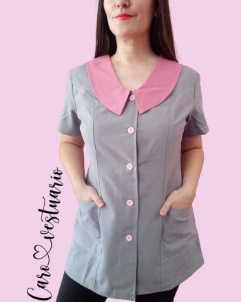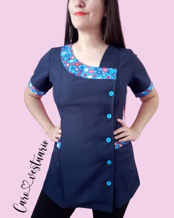Delantal Amanda Botones Azul con Calipo Diseño Tela Bistrech
