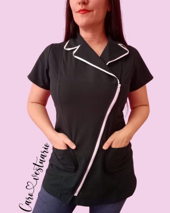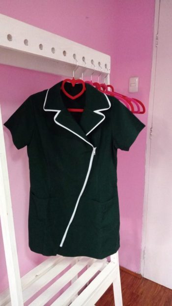 Delantal Eloísa Verde Botella con Blanco Aplicacion Mafalda Vestido Rojo