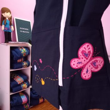 Delantal Lenka Azul Francia con Blanco aplicación Mariestrellas