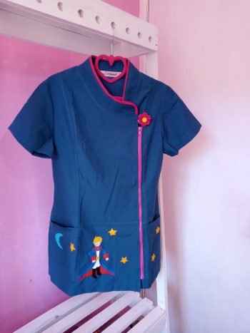 Delantal Lenka Azul Francia con Blanco aplicación Mariestrellas