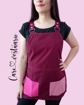 Jardinera Burdeo con Bolsillos Rosa y Fucsia