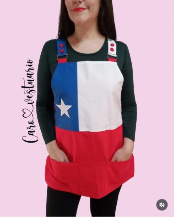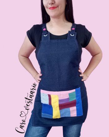 Jardinera Mezclilla Upcycling Boton Fucsia con Bolsillo XS