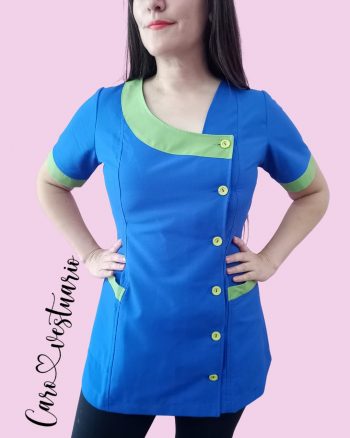 Delantal Amanda Botones Azul Rey con Verde Limon
